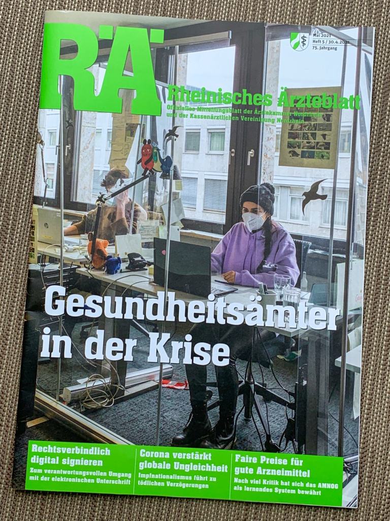 Bereits im Herbst hatte ich für das Rheinische Ärzteblatt im Zusammenhang mit einem Artikel über das „virtuelle Krankenhaus“ ein Titelbild produziert – kürzlich durfte ich erneut in einem sehr spannenden Zusammenhang für die Ärztekammer Nordrhein (und ihr Magazin „Rheinisches Ärzteblatt“) tätig werden: Im Gesundheitsamt Köln. Mein aktueller Titel zeigt einen ungestellten Blick auf die improvisierten Arbeitsplätze von derzeit rund 1300 Mitarbeiter/innen, die mit viel Einsatz die Registrierung Infizierter und die Kontaktverfolgung in der Pandemie managen.