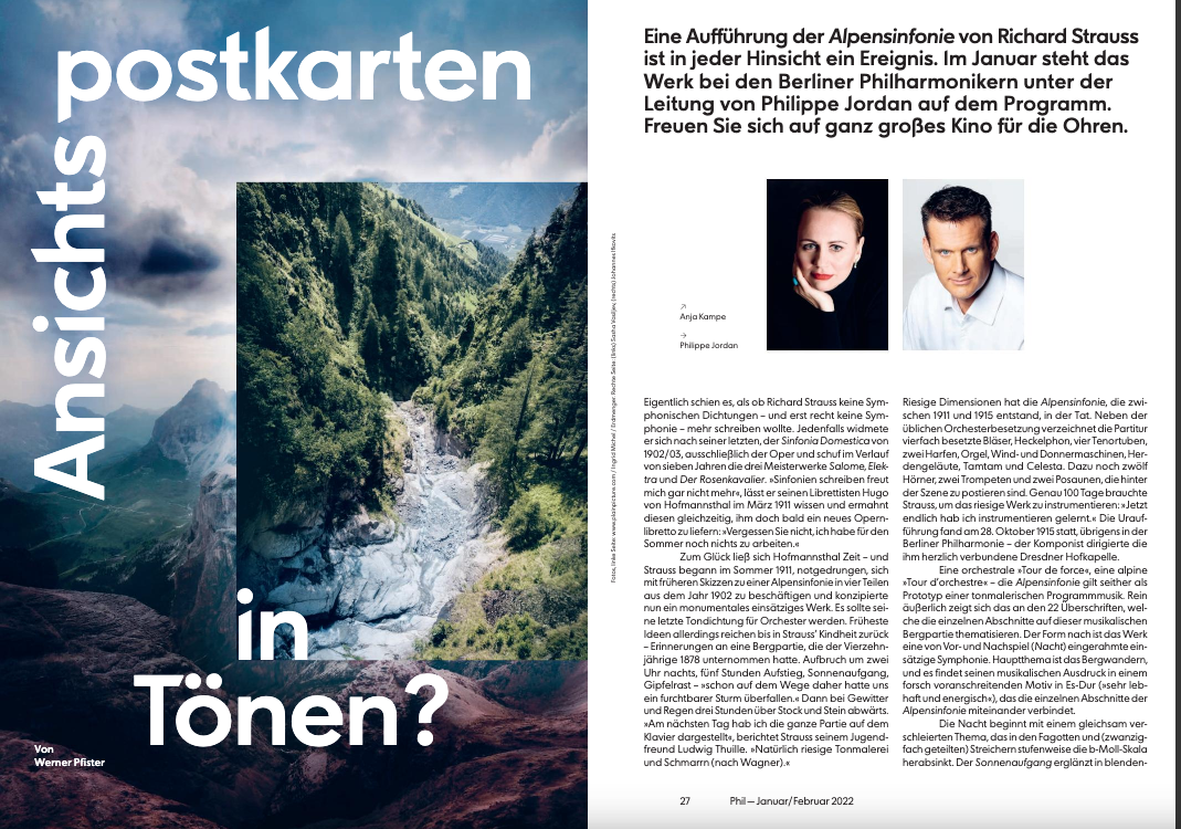 Vermutlich habe ich es in diesem Blog bereits erwähnt: Seit vielen Jahren verkaufe ich meine Fotos auch über die Bildagentur plainpicture. Dort landen natürlich keine Auftragsarbeiten, sondern solche Fotos oder Serien, die ich als freie Projekte fotografiert habe. Manchmal auch persönliche Fotos aus meinem Reisetagebuch. Und genauso persönlich ist auch meine Beziehung zu Richard Strauss´ Alpensinfonie. Eine sinfonische Dichtung der Spätromantik, uraufgeführt 1915, ein archetypisches Werk der Gattung Programmmusik. Es beschreibt den Aufstieg auf einen Berggipfel in den frühen Morgenstunden, die wechselhaften Blicke hinauf und hinab, es gibt zwischendurch einen ordentlichen Regenschauer, schließlich einen sehr stillen Moment beim Erreichen des Gipfels. Anschließend folgt der Abstieg zurück ins Tal. Ich habe dieses Stück schon als Kind oft gehört, weil es zu den Lieblingswerken meines Vaters gehörte – ich kann es aber vor allem auch sehr gut nachvollziehen und nacherleben, weil ich als Kind und Jugendlicher oft zu langen Wanderungen in den Alpen bereits vor Sonnenaufgang aufbrach. Umso mehr freut es mich, daß eines meiner Fotos, aufgenommen in Südtirol, nun ausgerechnet zur Illustration eines Artikels über die Alpensinfonie genutzt wurde! Hier blickt man hinab und folgt mit den Blicken dem Bergbach auf seinem Weg ins Tal. Vielen Dank für das „große Kino für die Ohren“!
