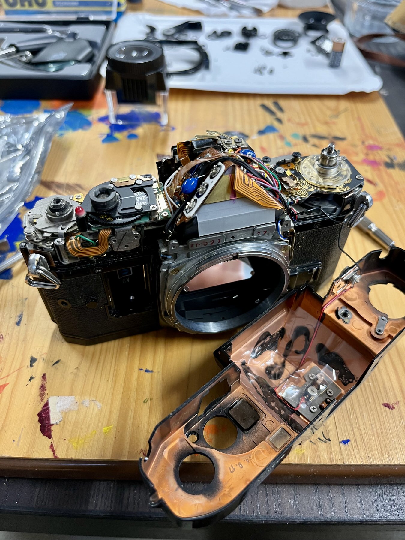 Bevor ich wirklich loslegen konnte, streikte erstmal eine meiner A1 – der Verschluss blieb offen. Durch Entnahme der Batterie konnte ich das zwar schnell beheben – leider zerbröselte aber im wörtlichen Sinn die Batteriefachtür dabei. Ersatz konnte ich zwar bestellen, aber ich brauchte eine schnelle Lösung. Zur Demontage des Türchens muss die Kamera halb auseinander gebaut werden. Die Einzelteile konnte ich fürs erste mit Plastikkleber zusammenfügen. Der Ersatzdeckel ist inzwischen angekommen, also habe ich diese Operation jetzt nochmals vor mir.