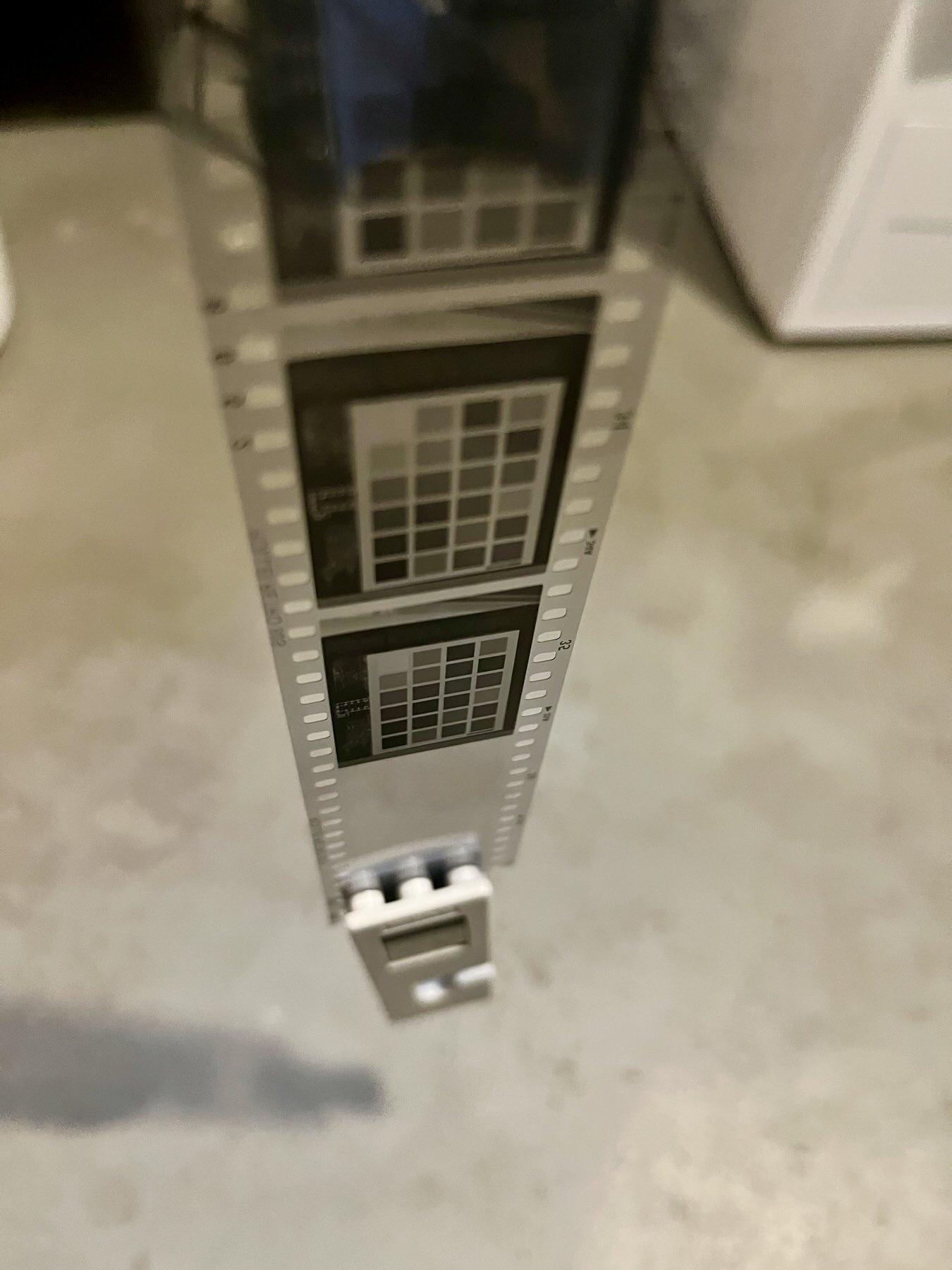 Als erstes Fazit kann ich sagen, dass die Trägermaterialien bei den beiden superpanchromatischen Filmen tatsächlich vollkommen klar sind – der Adox wird ja auch damit beworben, dass man ihm zum Diafilm umkehrentwickelt kann. Der Pan F weißt eine leichte Lila-Färbung auf, der Ilford Ortho eine typische Graufärbung. Anhand der einkopierten Filmbezeichnung würde ich vermuten, dass der Pan F länger hätte entwickelt werden müssen. Die schwache Randbeschriftung ist mir auch schon bei den Mittelformat-Ilfords aufgefallen. Der erste Blick auf die Negative scheint aber keine nennenswerte Unterentwicklung zu zeigen. Alle 4 Filme sehen anständig belichtet und entwickelt aus – bis auf die Fotos, die ich mit Infrarotfilter fotografiert habe. Diese scheinen allesamt recht dicht belichtet zu sein. Ob das am Motiv lag oder an der von mir angewendeten Verlängerung der Belichtungszeit um 6 Stufen, kann ich vielleicht besser beurteilen, wenn die Filme gescannt sind.