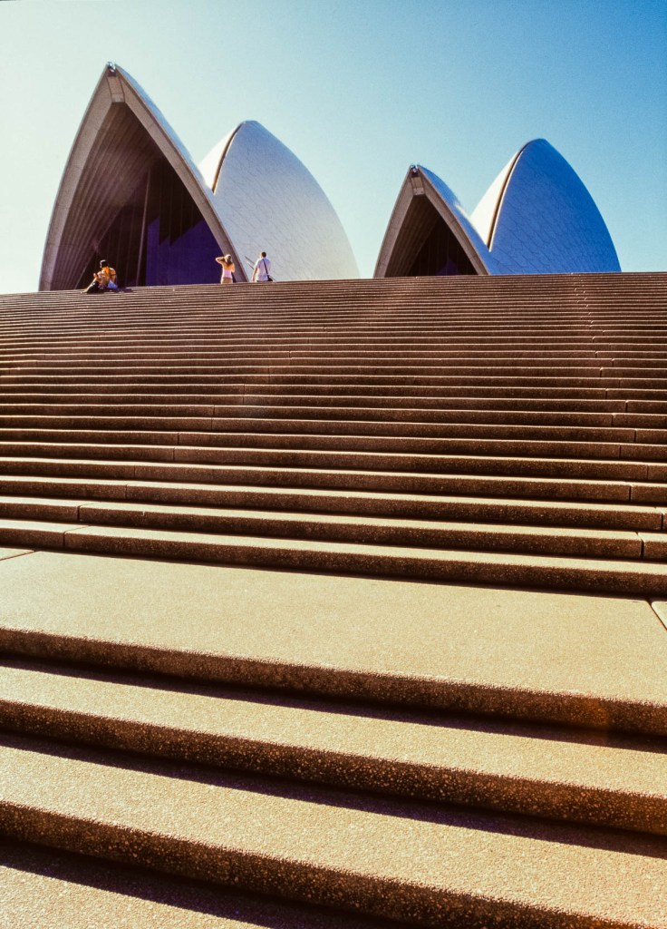 Vor 20 Jahren ist Schröder Bundeskanzler und Zuckerberg gründet Facebook. Und ich lebe in der Schweiz. Schon 2003 war ich dorthin gezogen und hatte begonnen, für die AO Foundation zu arbeiten, einem internationalen Forschungsunternehmen mit Sitz in Davos. Für die AO fotografierte ich im Studio Prototypen von Nägeln und Platten zur Frakturbehandlung, ich war aber auch häufig in verschiedenen Spitälern der Schweiz live dabei, wenn bei Operationen die von der AO erforschten Methoden und Materialien benutzt wurden. Ich war aber auch noch weiter weg – in Australien, wo wir für ein paar Wochen den Süden und Osten bereisten. Das hier gezeigte Foto muss ich kaum erklären, es ist eine architektonische Ikone. Das Opernhaus in Sydney erkennt man auf den ersten Blick, auch wenn ich bewußt nur einen kleinen Teil gezeigt habe. Die Linien und Strukturen von Architektur, auch das Abstrakte daran, haben mich offensichtlich schon damals interessiert. Belichtet mit einer Canon EOS 3 auf Ektachrome.