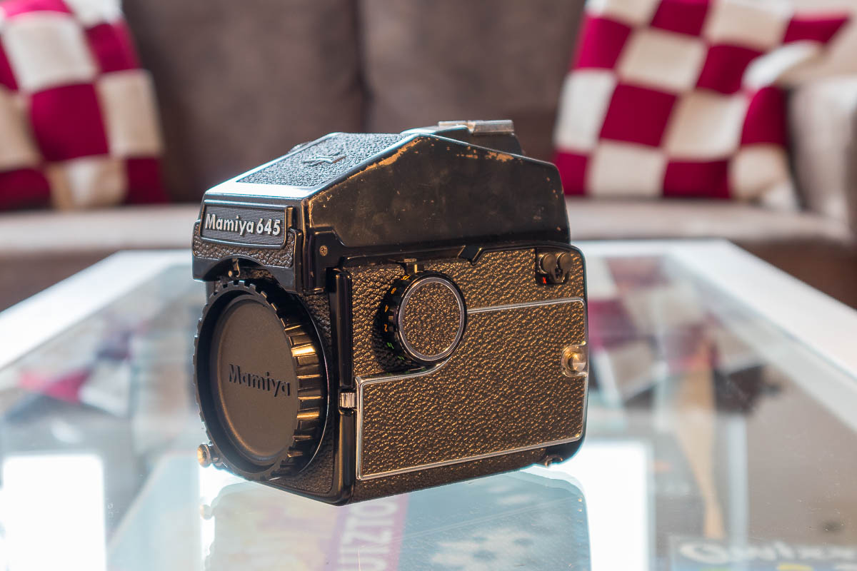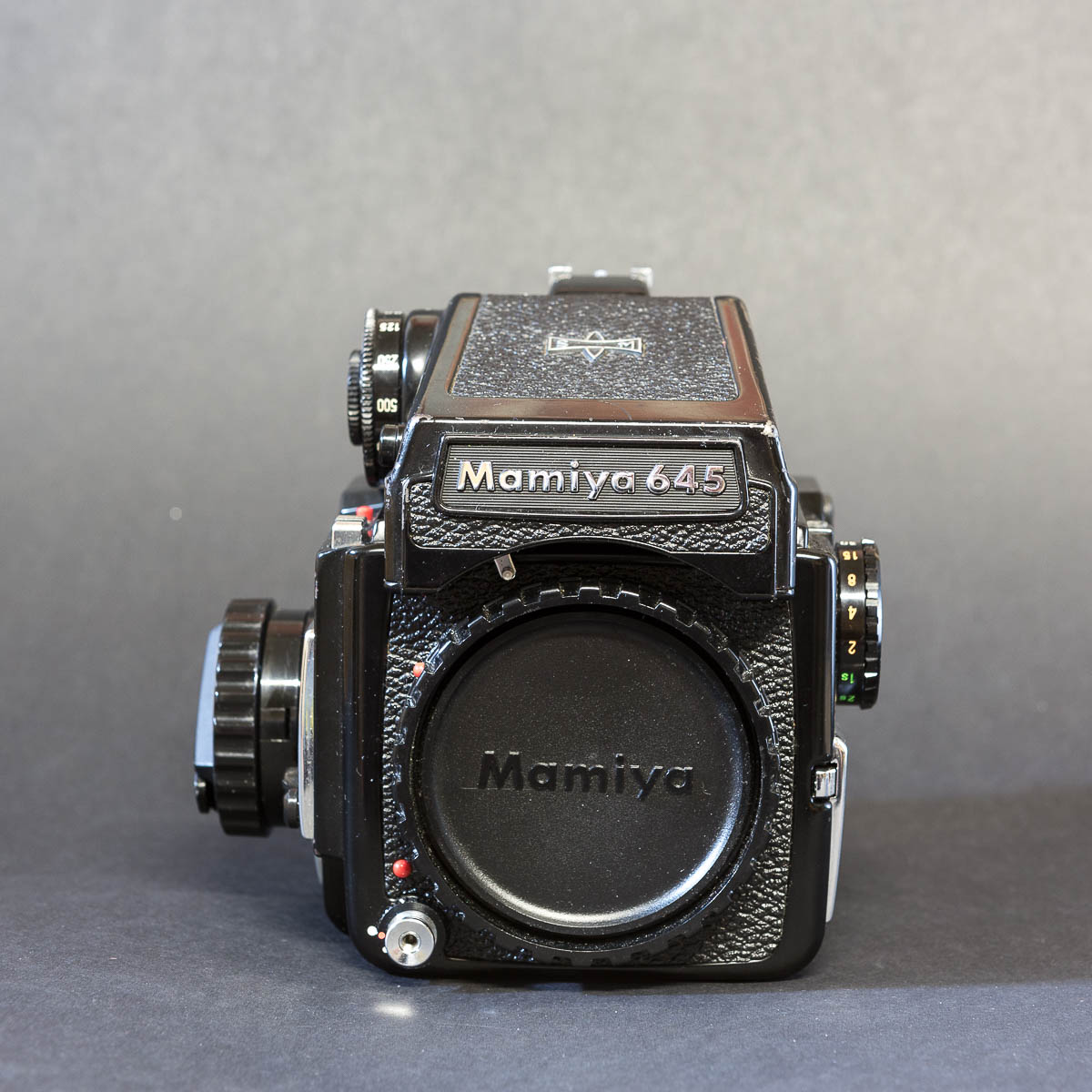 Ich biete hier eine Mamiya M645 an, die bekannte kleine Mittelformat-System-Kamera für 4,5x6cm große Negative. Es handelt sich um die Original-Serie, die 1975 auf den Markt kam. Dieses Modell hat 1/500sec als kürzeste Verschlusszeit (im Gegensatz zur M645 1000S, die später kam). Im Unterschied zur günstigeren 645J bietet dieses Modell jedoch die Möglichkeit zur Mehrfachbelichtung und eine Spiegelvorauslösung.
