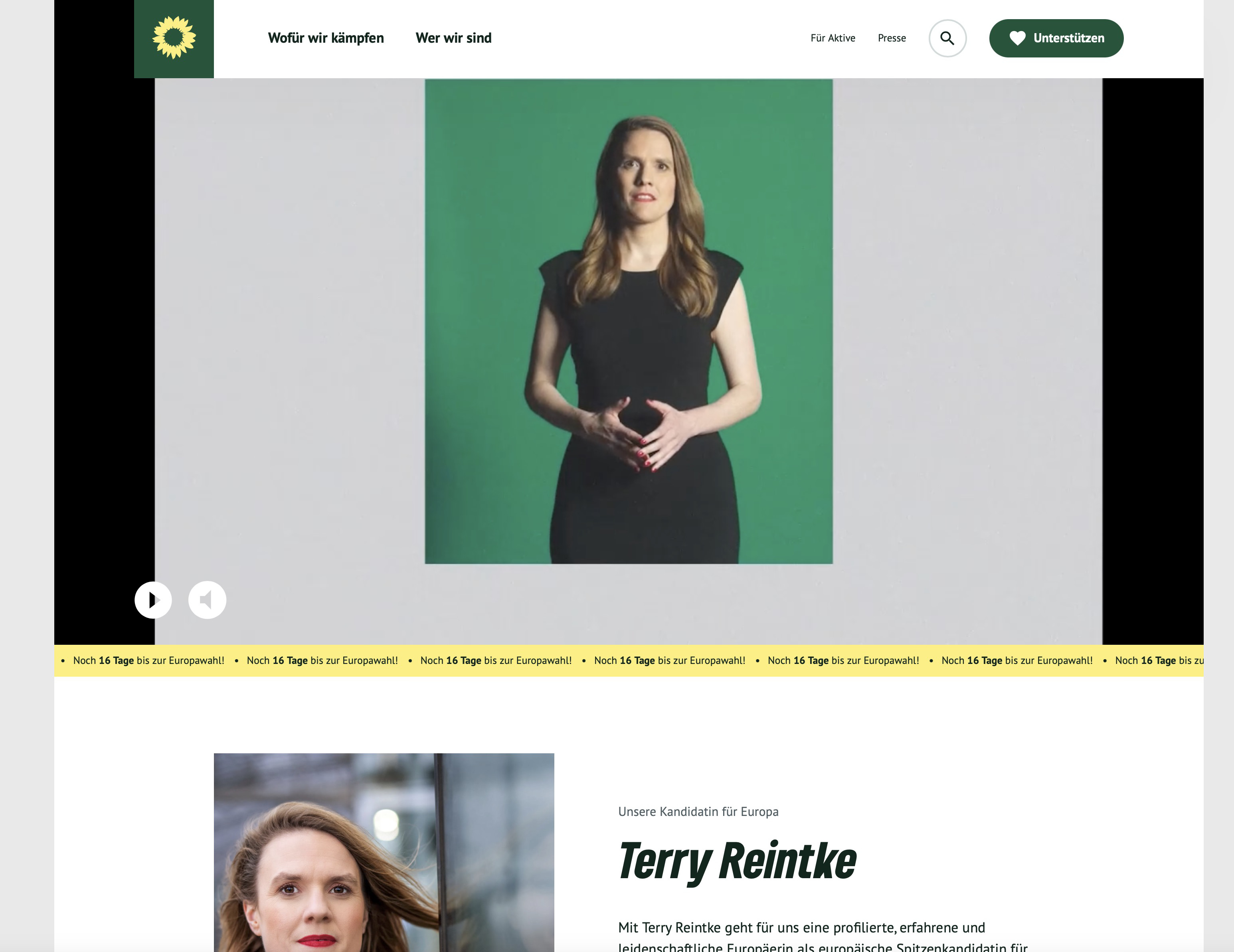 Die Grünen, die auf ihren Plakaten natürlich auch mit dem Vizekanzler als Zugpferd werben, legen eine desaströse Webseite vor. Die sieht aus wie aus den 90er Jahren. Oder ist die nur für die Generation Smartphone gemacht? Ästhetisch leider murks. Und die Spitzenkandidatin ist so absurd geschminkt, das ich mich frage, wer das verbrochen hat. Das hat schon fast abschreckende Wirkung – was ich angesichts der wichtigen Ziele dieser Partei sehr schade finde. Abgesehen vom „Lipglossgate“ ist das Portrait von Frau Reintke das einzige, das nicht im Studio entstanden ist. Es hat dadurch etwas modern-urbanes – inklusive dynamisch wehender Haare. Das versöhnt ein bißchen …