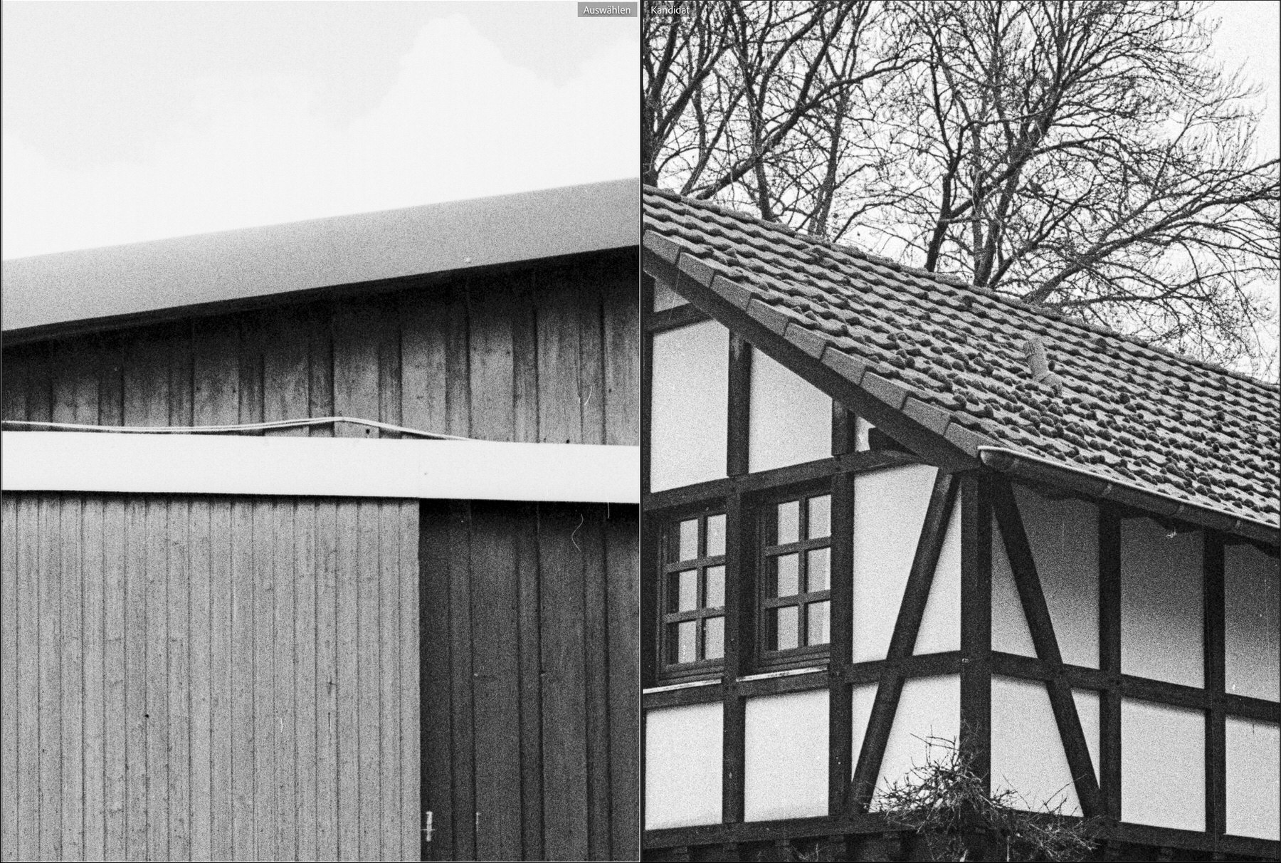 Um dies und das zu probieren, hatte ich einen FP4 in die Hi-Matic eingelegt und zur Hälfte belichtet. Dabei nutzte ich die App Lightme auf meinem iPhone zur Belichtungsmessung. Es ergab sich, dass ich einige Motive am Reitstall machen konnte. Den Film spulte ich bei Aufnahme 16 zurück und legte ihn in die Canonet ein. Beim Vorspulen war ich allerdings zu sparsam – ich hätte noch 1 oder 2 Frames weiter spulen müssen, um die resultierenden Doppelbelichtungen zu verhindern 😉 Deshalb habe ich nur 1 von 3 Motiven, die ich innerhalb von Minuten mit beiden Kameras auf demselben Film gemacht habe, auswerten können.