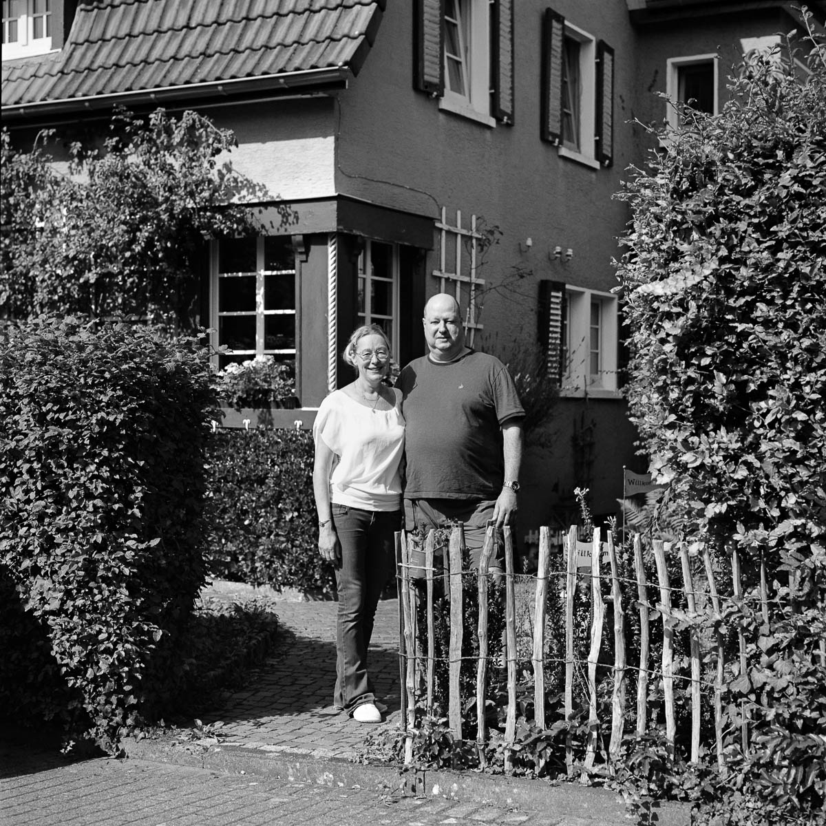 Vor 2 Jahren habe ich gemeinsam mit Freunden ein Buch herausgegeben – über die Gartensiedlung Gronauer Wald in Bergisch Gladbach. Darin sind nicht nur viele meiner aktuellen Fotos aus der Nachbarschaft enthalten, sondern auch viele historische Aufnahmen. Vor gut 100 Jahren wurden die Bewohner vielfach vor ihren Häusern fotografiert – sicherlich, weil es technisch einfacher war, bei Tageslicht zu fotografieren und weil es weite Wege in ein Fotostudio vermied. Zum andern stelle ich mir vor, dass auch ein bißchen Stolz auf das neue Zuhause eine Rolle bei der Motivwahl spielte.