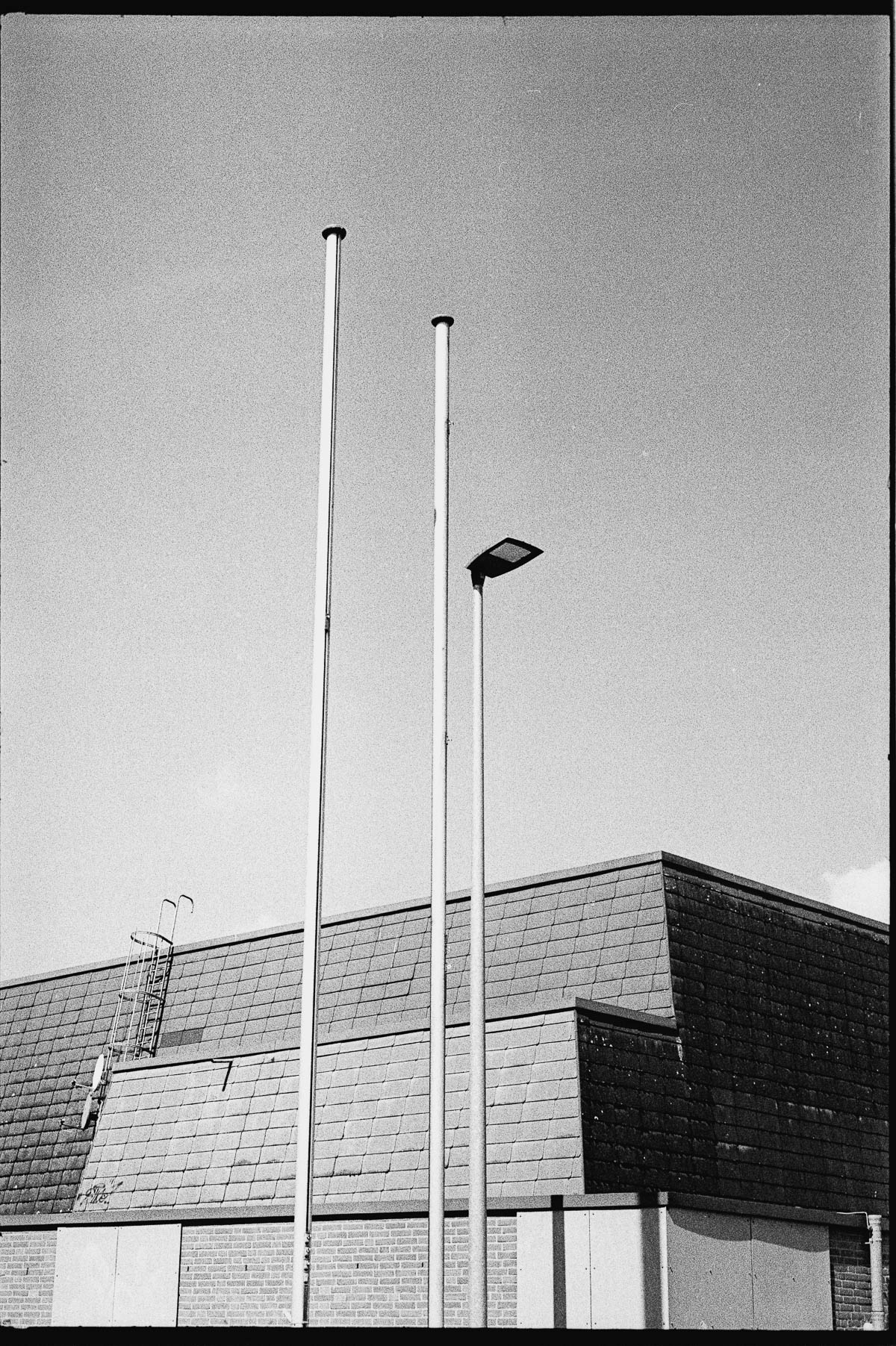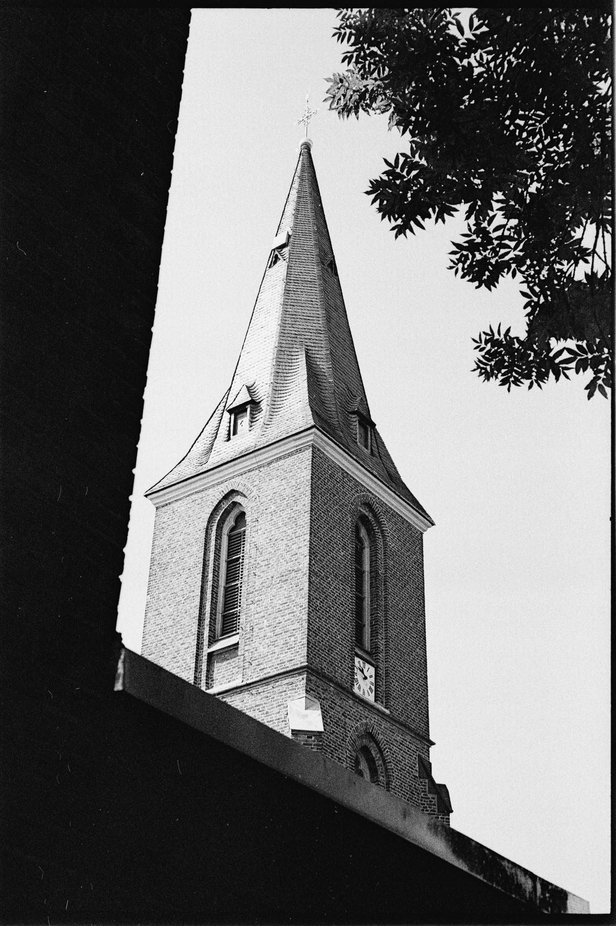 Mich reizte es, diesen Film mal zu probieren – mit Tri-X habe ich früher schon gerne fotografiert. Den Double-X nahm ich mit nach Refrath, einen Stadtteil, den ich fotografisch noch gar nicht erkundet habe. Entwickelt habe ich wie immer in Caffenol. Das Material hält, was die Prognose verspricht: Tiefes Schwarz, betone Kontraste und deutliches Korn. Die Schärfe und Auflösung haut mich nicht vom Hocker – aber das ist natürlich auch abhängig von der präzisen Fokussierung und dem verwendeten Entwickler.