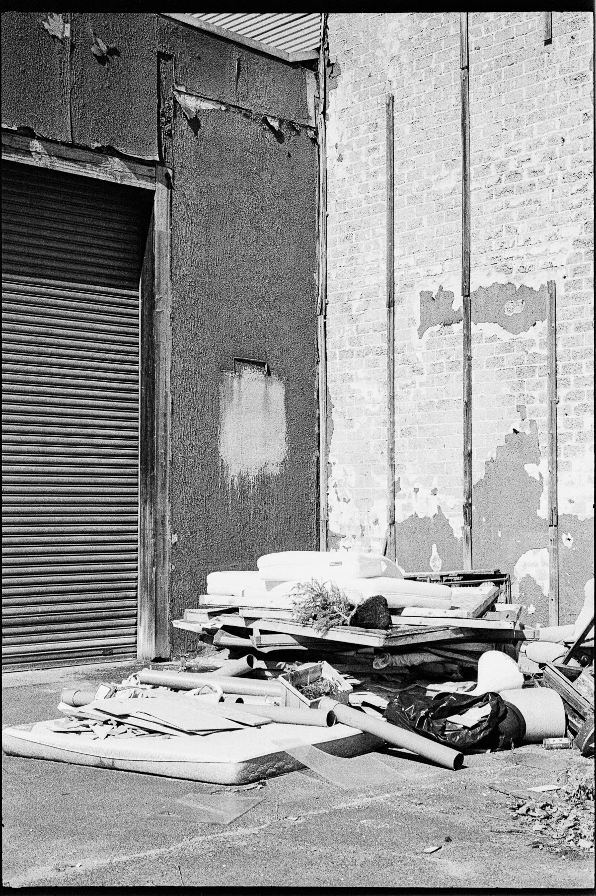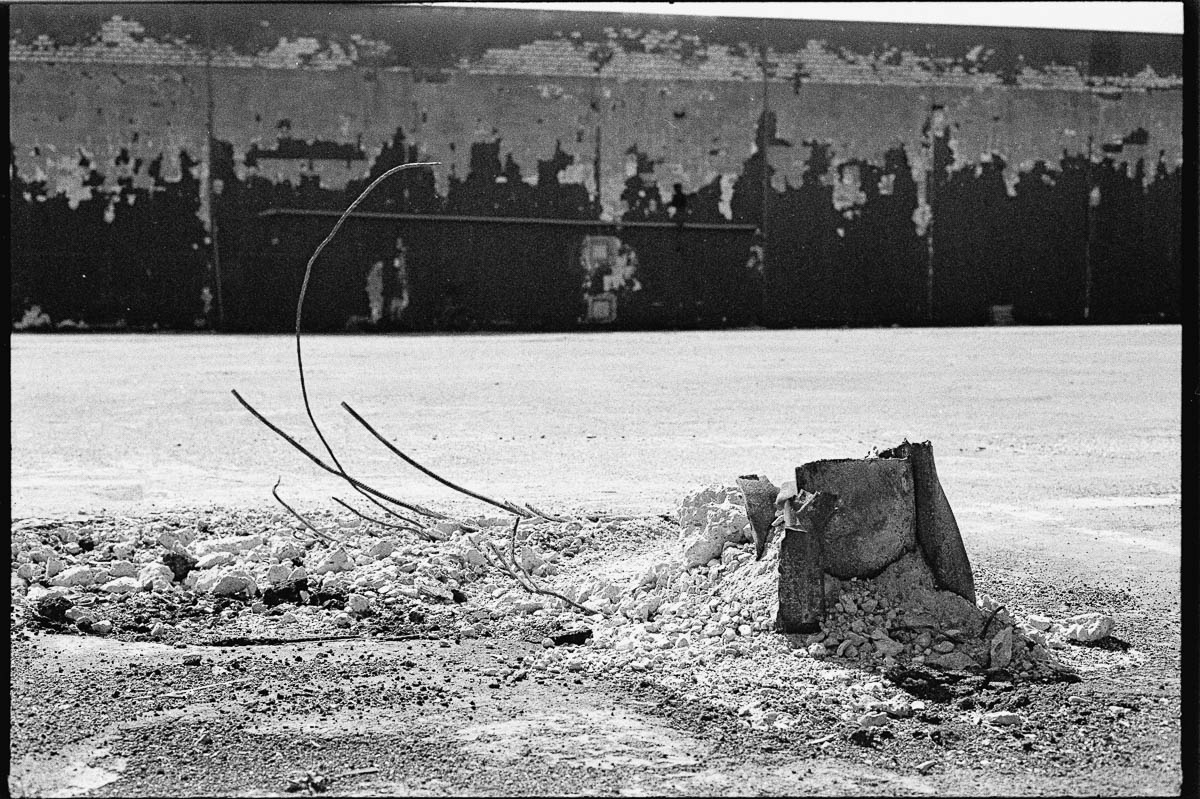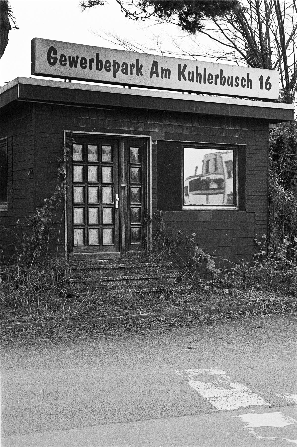Dieser Tage führten mich meine Schritte wiederum in das Gewerbegebiet Kuhlerbusch. Mittlerweile sind viele der alten Bauten abgerissen, auch der Turm steht nicht mehr. Gähnende Leere und grelle Sonne erwarteten mich vor Ort – dennoch ergaben sich natürlich ein paar interessante Motive, die ich auf dem verbliebenen Rest eines Kodak 5222 Films festhielt. Die Aufnahmen entstanden auf einer Leica M4-P mit einem Summicron 2,0/50mm – das ist aber ein Thema für einen späteren Beitrag 😉