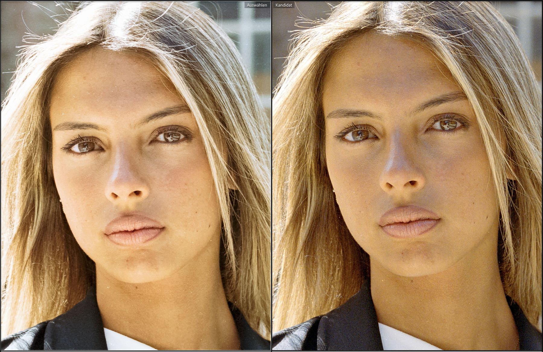 Nach meinen ersten Tests, für die ich 6×7-Negative verwendet habe, wollte ich sehen, wie groß der Unterschied beim kleineren 4,5×6-Mittelformat ist. Auch hier ist der Gewinn an Schärfe und Details deutlich sichtbar. Für die hier gezeigten Vergleichsbilder habe ich die „Camera Scans“ nicht einmal geschärft: