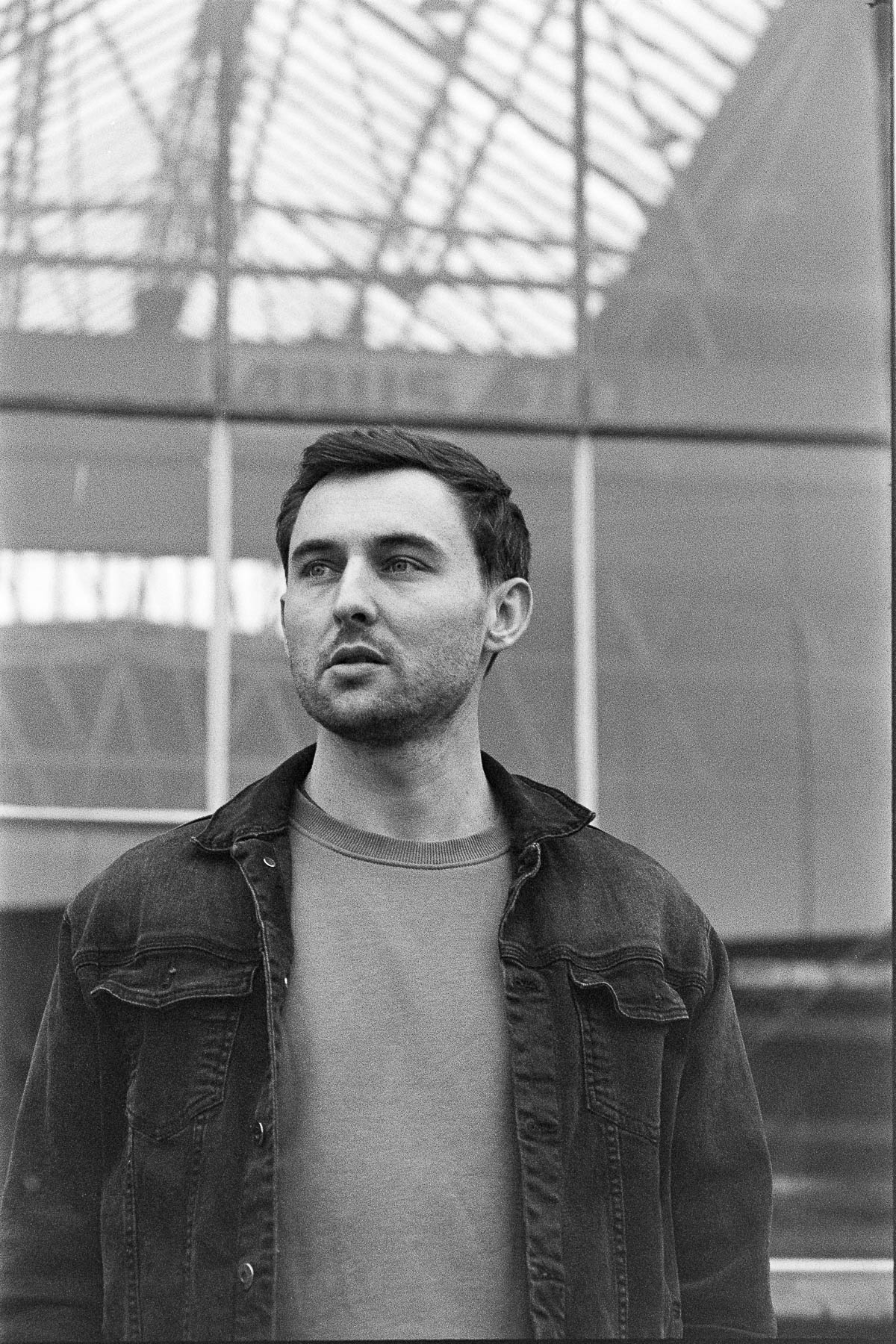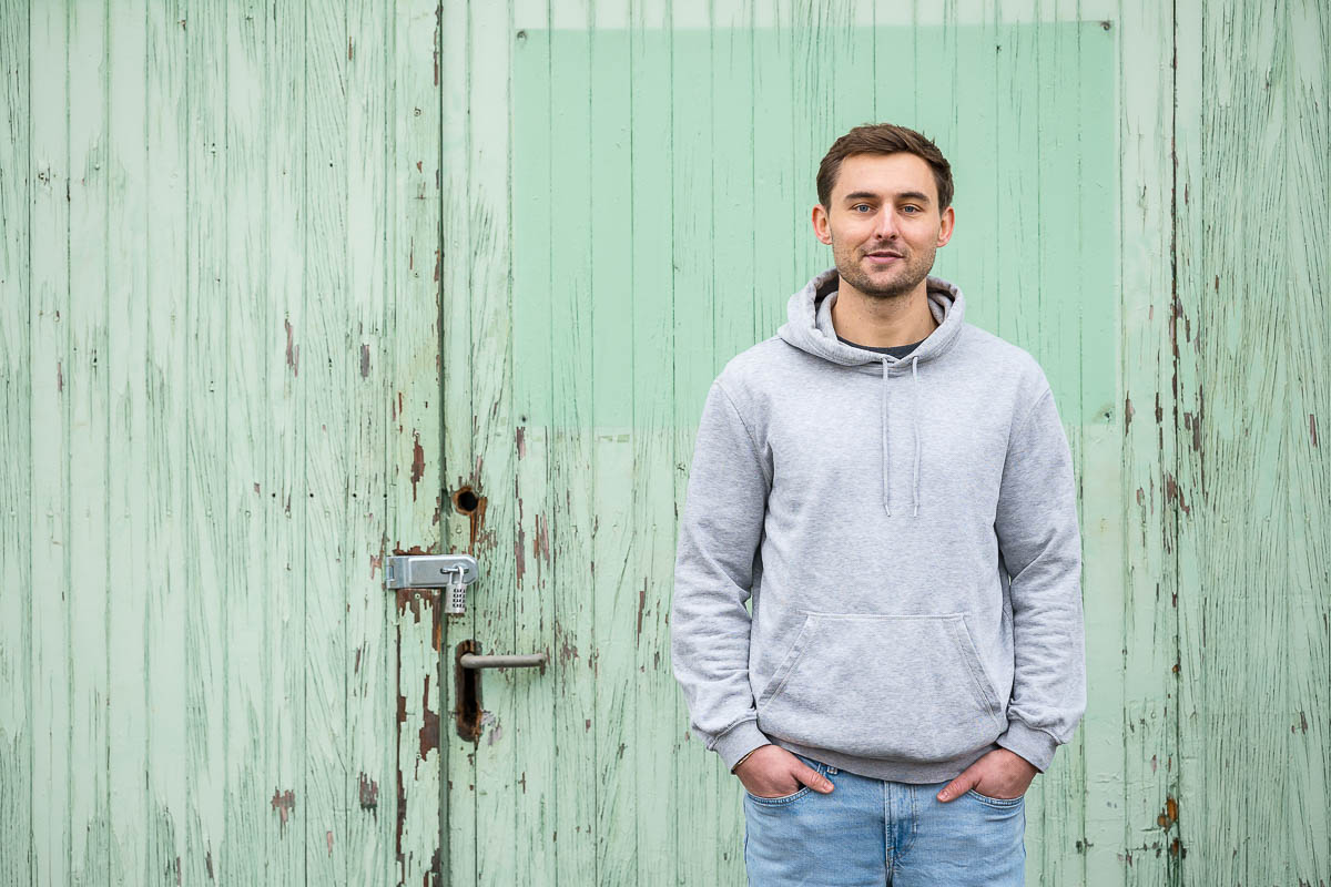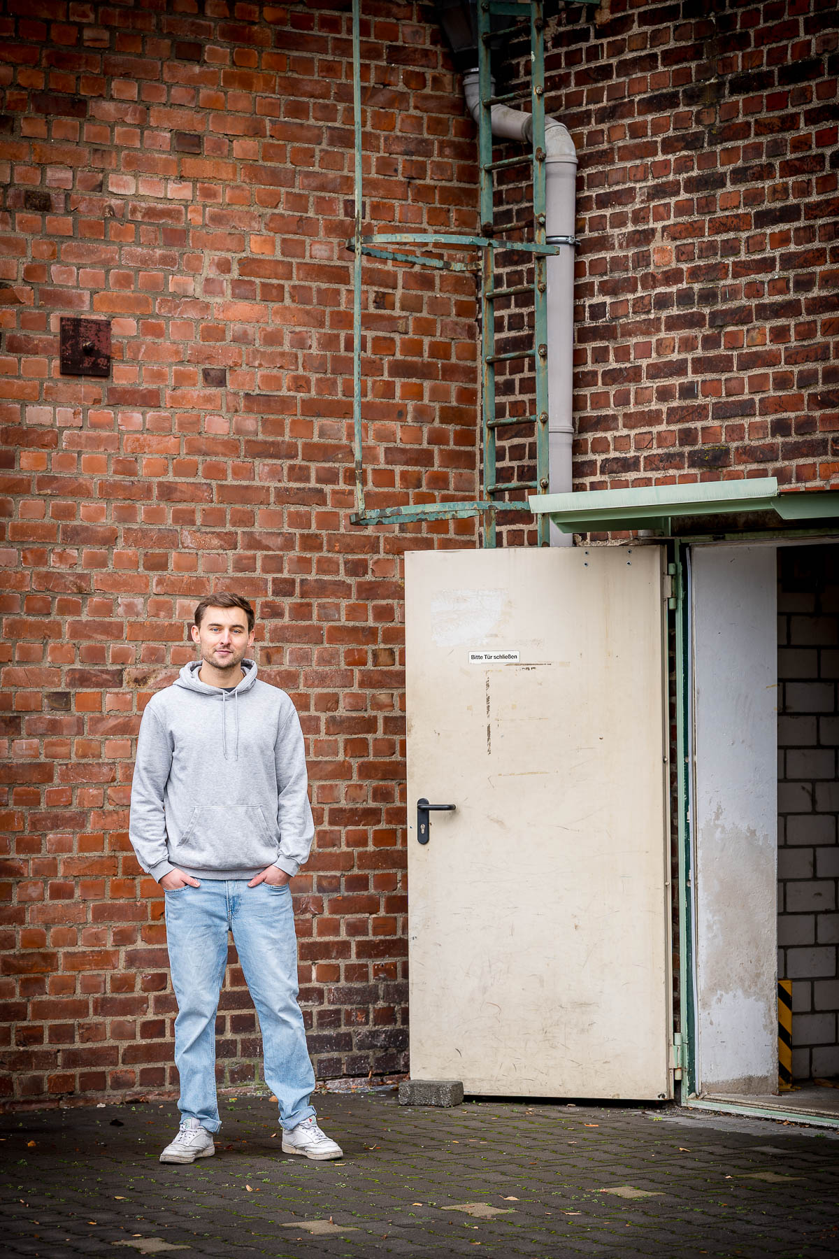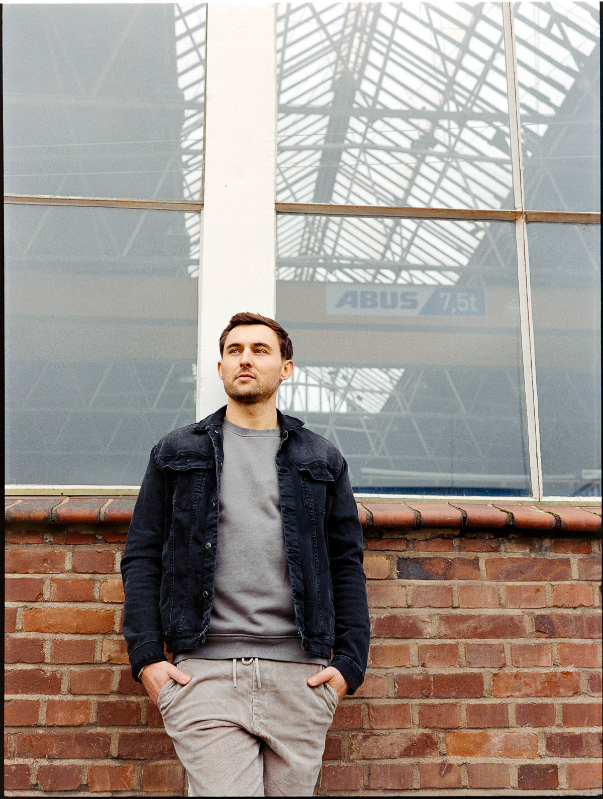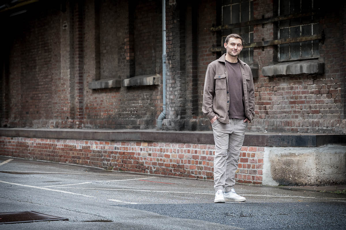 Wir kennen uns inzwischen bestimmt schon seit 10 Jahren – ich hatte Lucas bei verschiedenen Auftritten immer mal wieder vor der Linse. In Vorbereitung auf das Album-Release bat er mich nun, Portraits zu fotografieren. Wir sind dazu im Leskanpark unterwegs gewesen – in der alten Industrie-Szenerie fühlten wir uns beide wohl und fanden zahlreiche interessante Hintergründe für die Fotos. Als Besonderheit habe ich das Shooting wieder hybrid fotografiert, ich hatte also neben der Digitalkamera auch eine Kleinbildkamera mit Schwarzweißfilm und darüber hinaus sogar noch eine Mittelformatkamera mit einem Farbfilm dabei. Für die Technikinteressierten: Leica M4-P mit Elmar-C 4/90mm und Ilford HP5 sowie Fuji GS645 Pro mit Kodak Gold, belichtet und gepusht auf ISO400. Die Digitalfotos sind auf der Lumix S5II mit dem Sigma ART 2,8/105mm entstanden.
