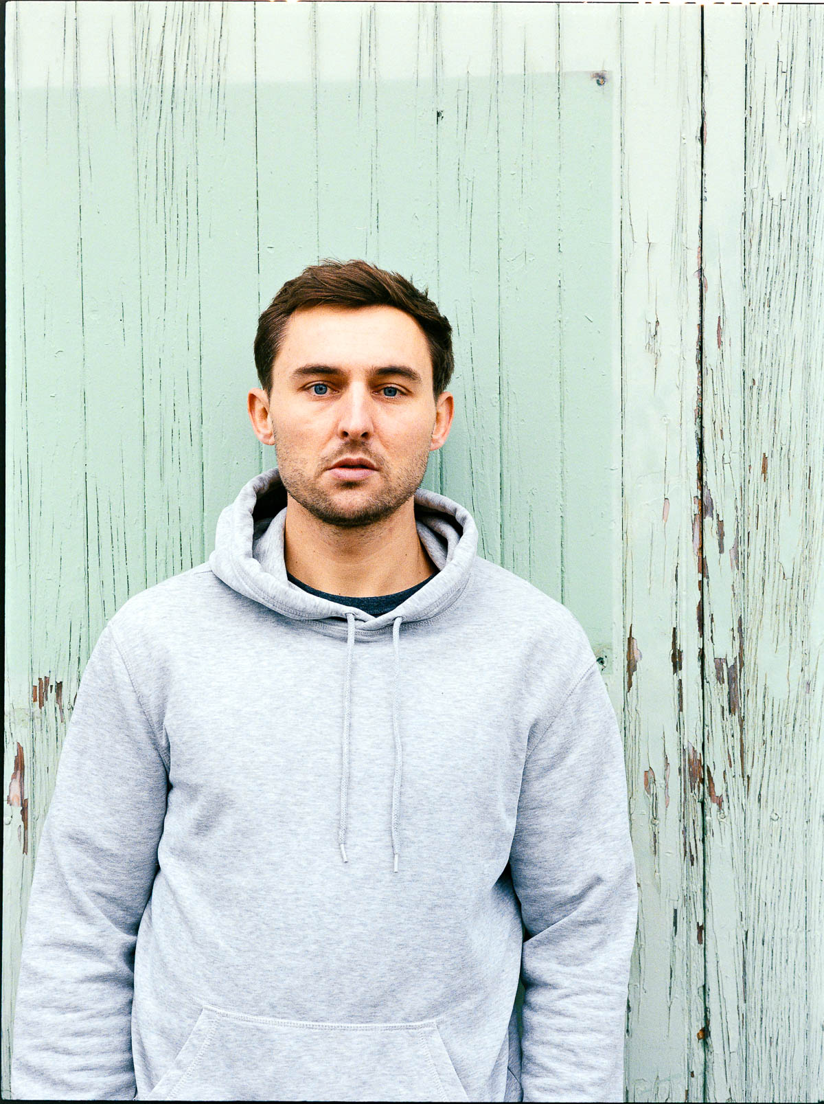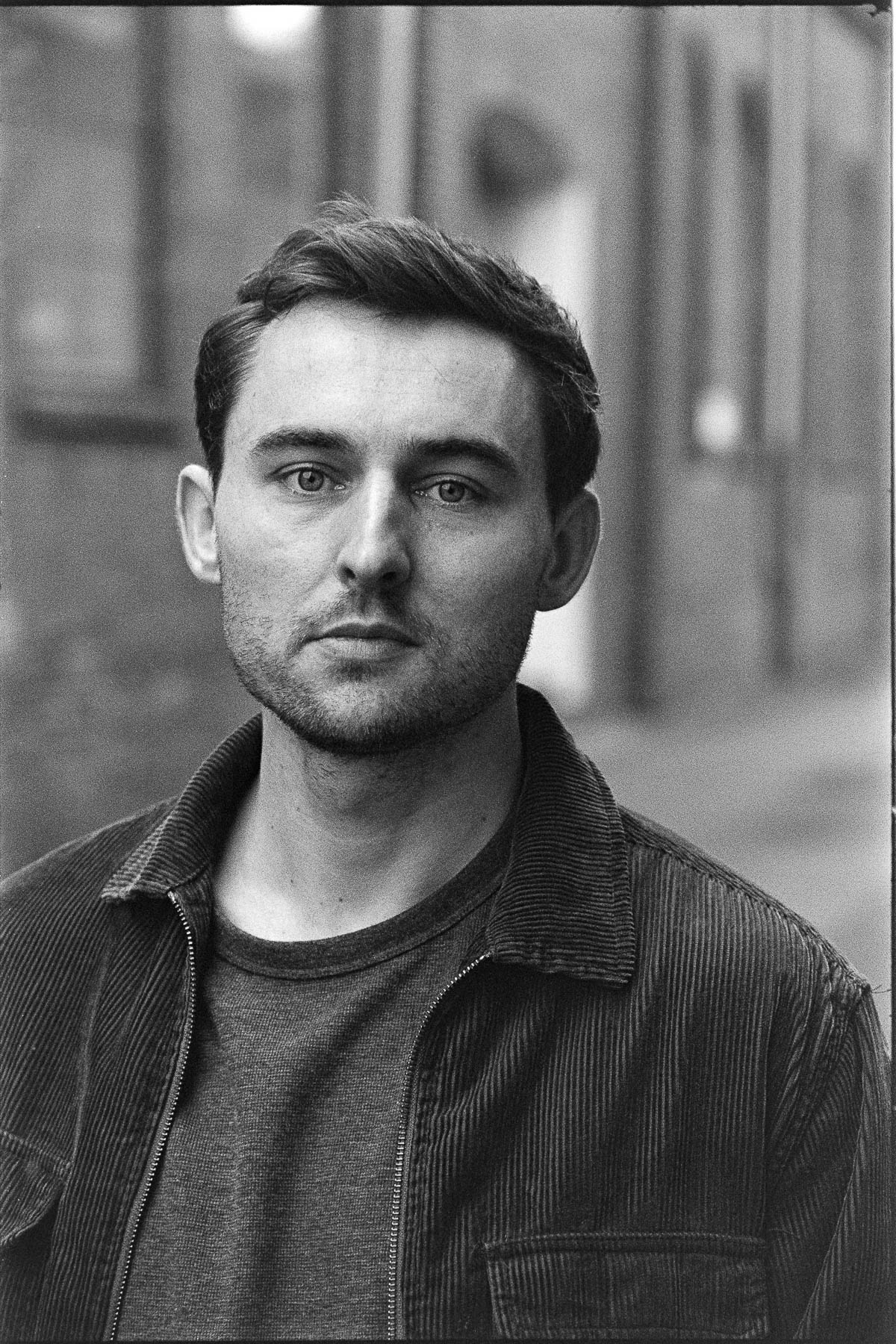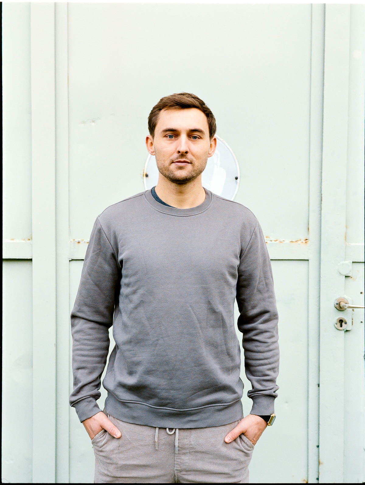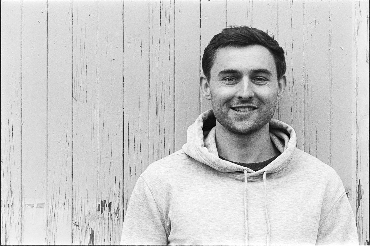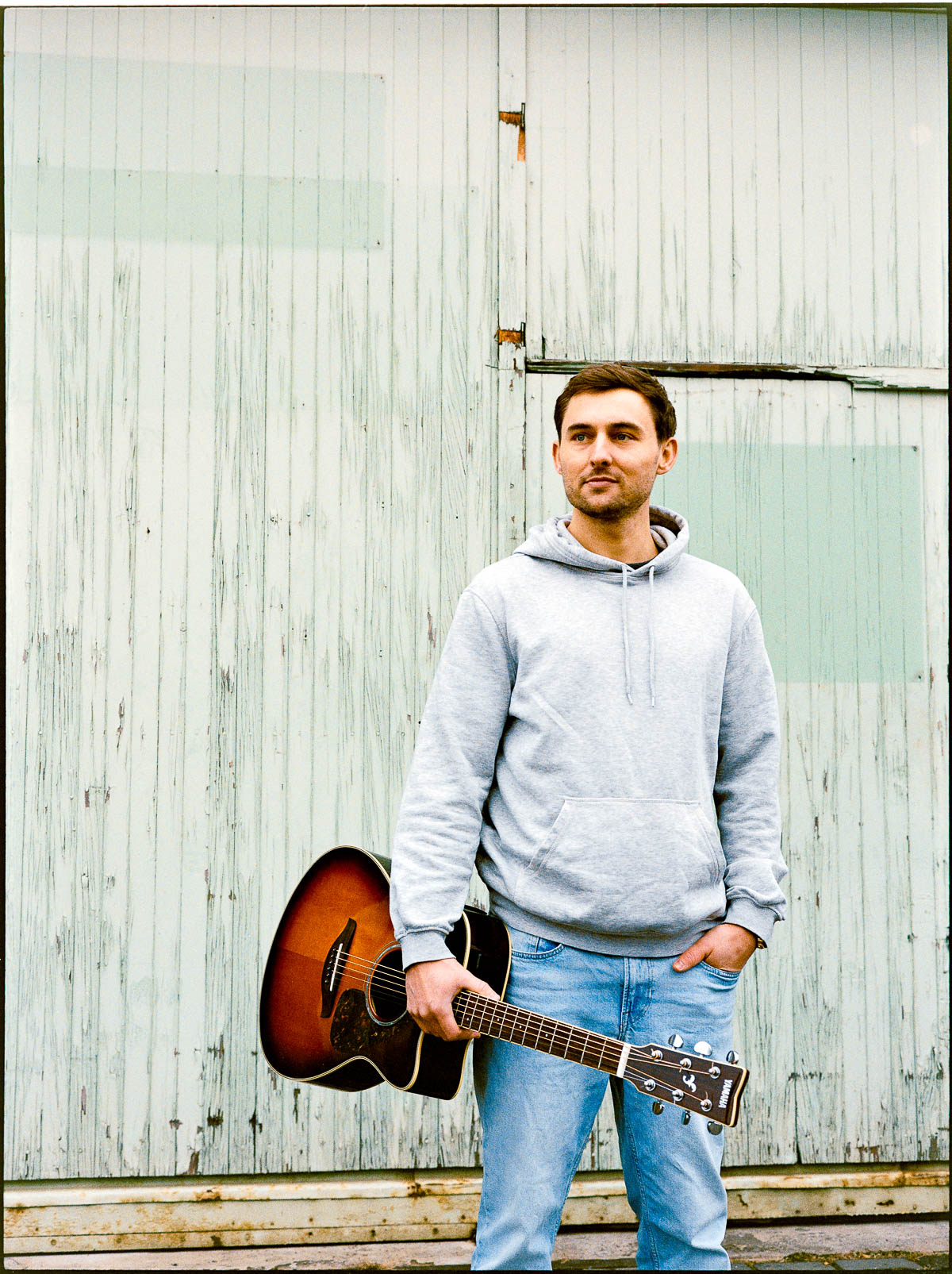 Wir kennen uns inzwischen bestimmt schon seit 10 Jahren – ich hatte Lucas bei verschiedenen Auftritten immer mal wieder vor der Linse. In Vorbereitung auf das Album-Release bat er mich nun, Portraits zu fotografieren. Wir sind dazu im Leskanpark unterwegs gewesen – in der alten Industrie-Szenerie fühlten wir uns beide wohl und fanden zahlreiche interessante Hintergründe für die Fotos. Als Besonderheit habe ich das Shooting wieder hybrid fotografiert, ich hatte also neben der Digitalkamera auch eine Kleinbildkamera mit Schwarzweißfilm und darüber hinaus sogar noch eine Mittelformatkamera mit einem Farbfilm dabei. Für die Technikinteressierten: Leica M4-P mit Elmar-C 4/90mm und Ilford HP5 sowie Fuji GS645 Pro mit Kodak Gold, belichtet und gepusht auf ISO400. Die Digitalfotos sind auf der Lumix S5II mit dem Sigma ART 2,8/105mm entstanden.