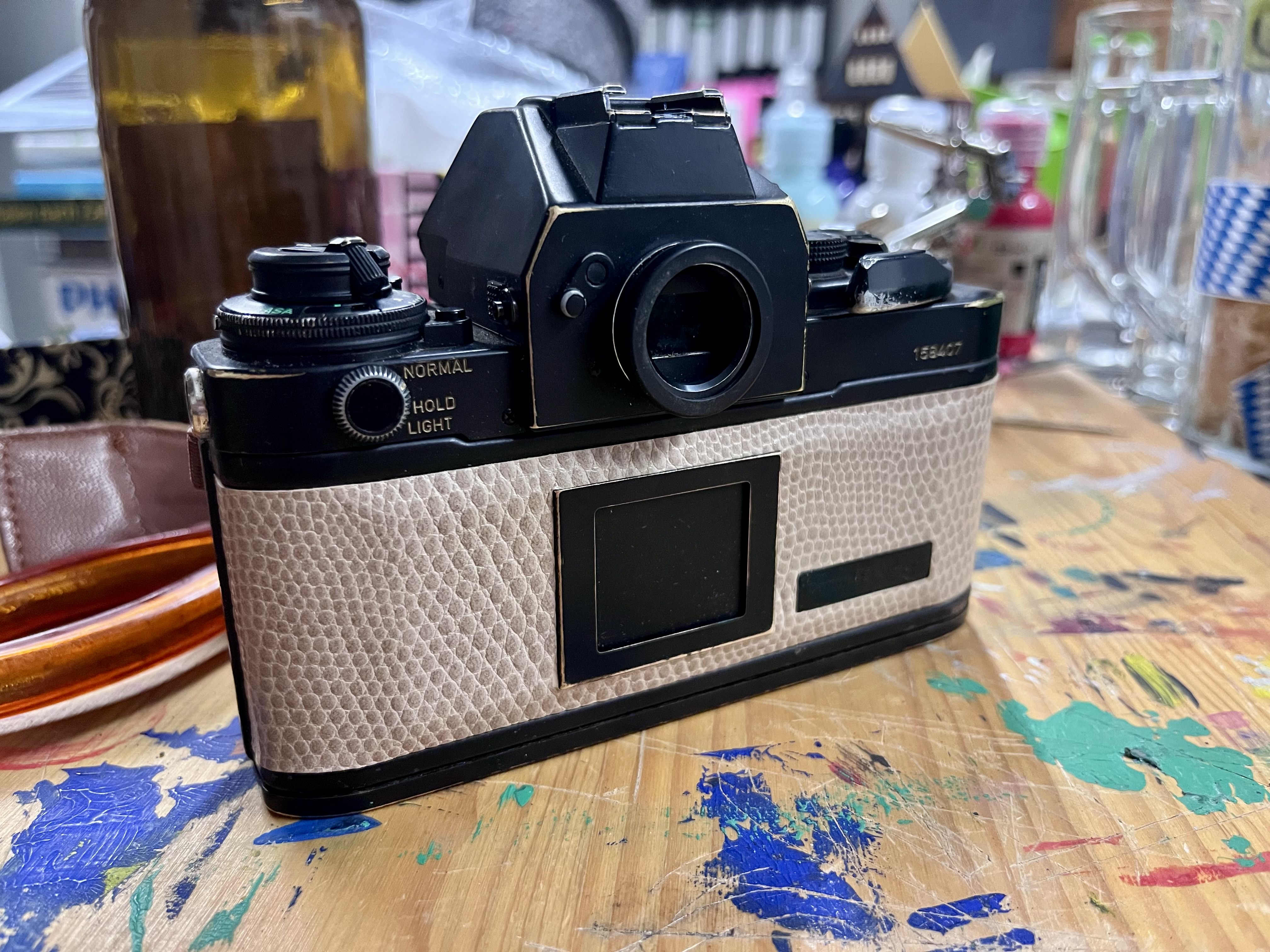 Als Versuchskaninchen diente eine meiner Canon New F1, die ein gewagtes neues Outfit bekam. So konnte ich das Entfernen der alten Belederung und der Klebereste üben und die Passgenauigkeit der lasergeschnittenen Coverings testen. Das ist ein bißchen Gefummel und Handarbeit, aber keine Raketentechnik – wer also Bedarf hat oder einfach ein schickes neues Design ausprobieren möchte, der sollte sich ruhig daran wagen!